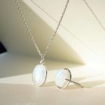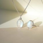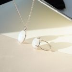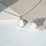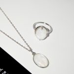 This set includes: moonstone pendant + chain, moonstone ring covered with precious rhodium coating