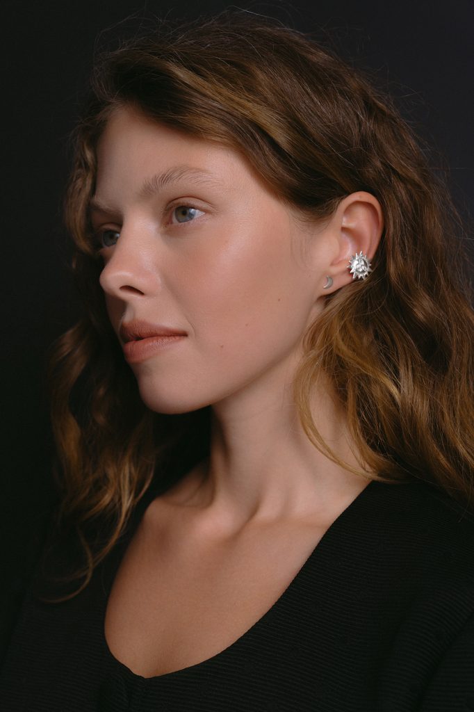 Срібло 925 проби та бусина з опалу. Ручна робота. Вага – 0,4 грам.